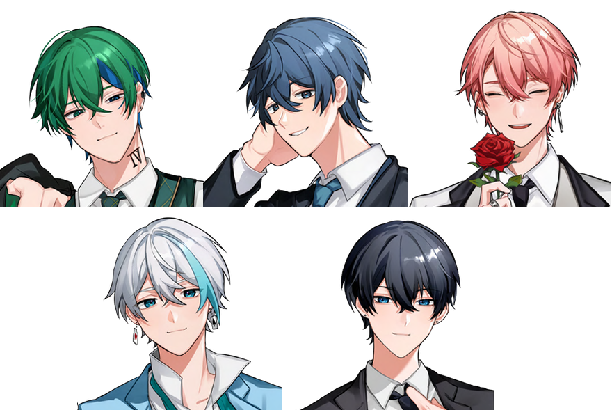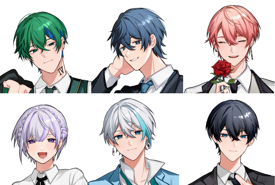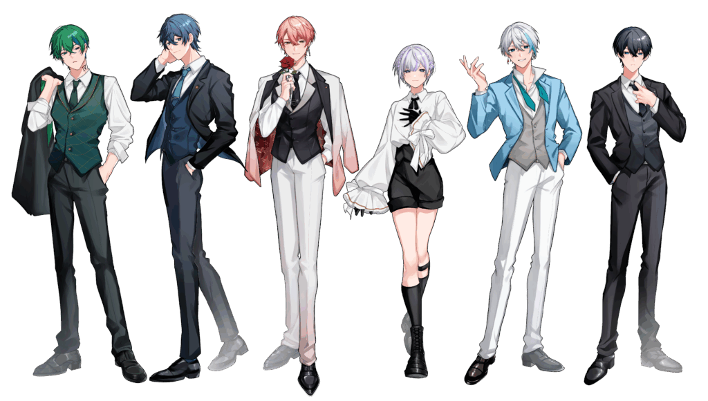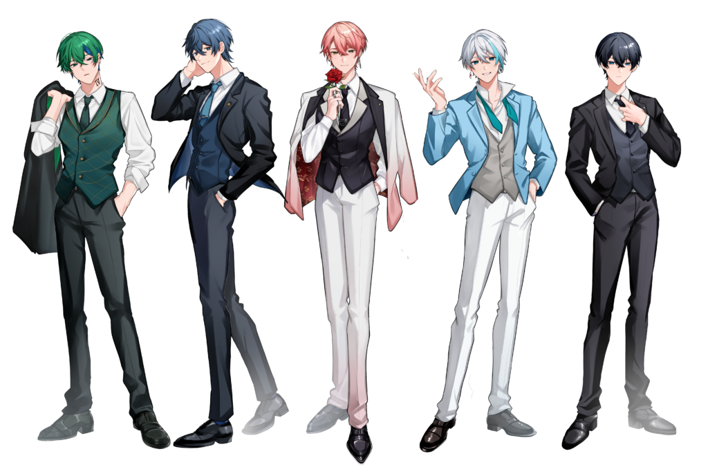 Vivid Bullet 様からのご依頼により、メンバー全員の立ち絵を制作しました。各キャラクターの個性を損なわないよう、表情やポーズの設定に配慮し、グループ全体で統一感が出るよう色彩バランスを調整。複数人が並んだ際にも違和感が生じないよう、全体の調和を重視しています。